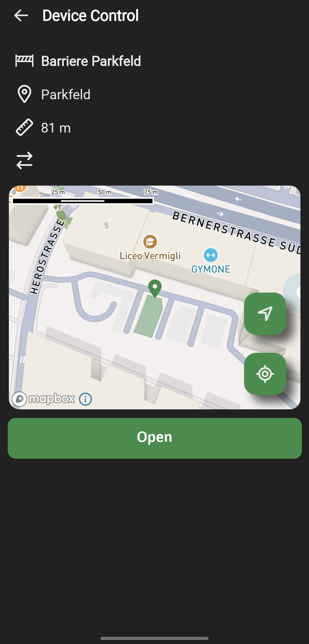 Parker can control their assigned devices like garage-doors, Bollards, Barriers or any other controllable device, dirctly from within the mobile app. Controlling of the devices by the web browser is supported as well.